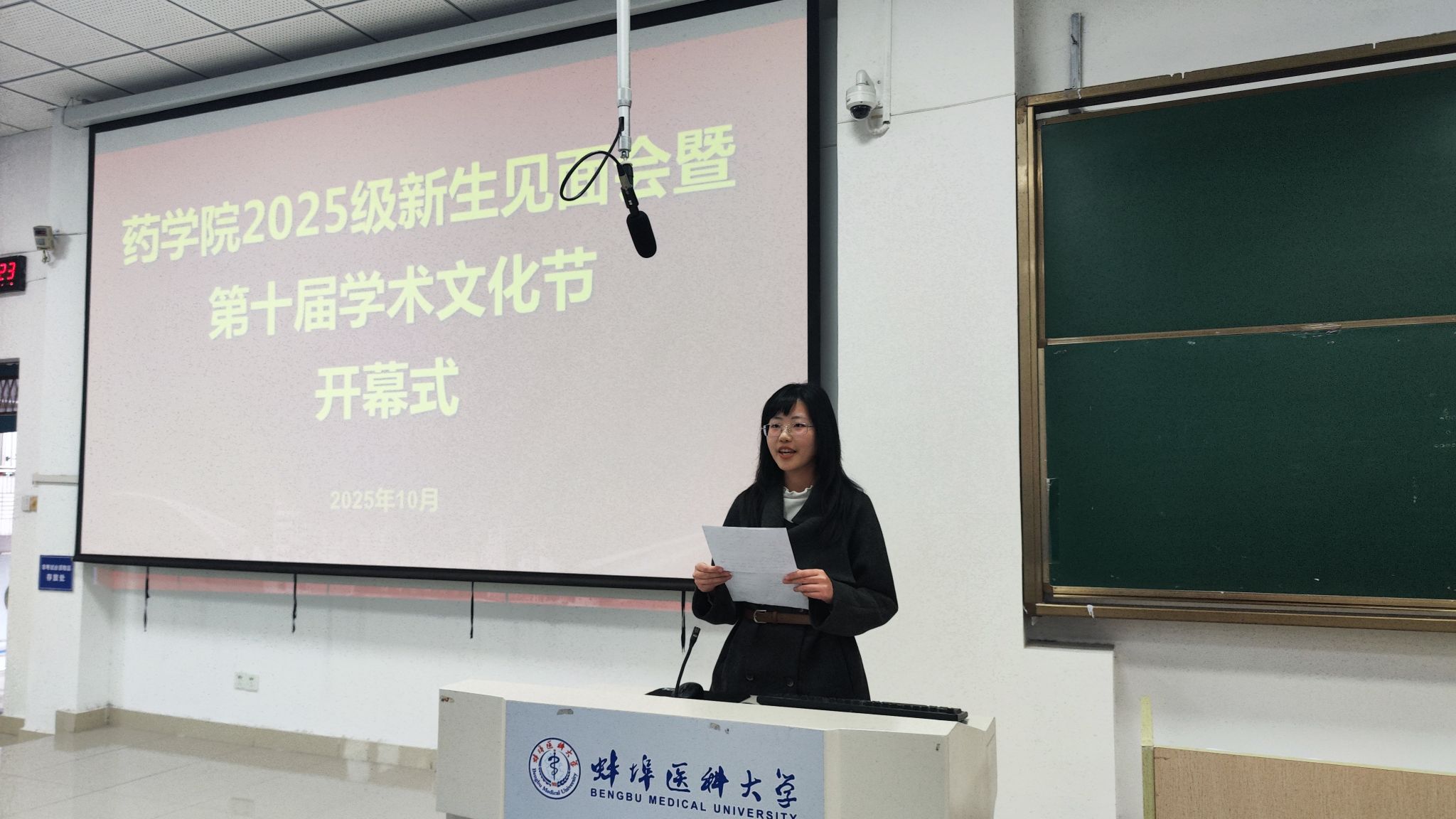 10月21日下午,药学院2025级新生见面会暨第十届学术文化节开幕式在G4教室隆重举行。学院领导、党委委员、各教研室与实验中心负责人、第一及第二附属医院药剂科负责人、各年级辅导员以及2025级全体本科生和硕士研究生共同参加了本次活动。