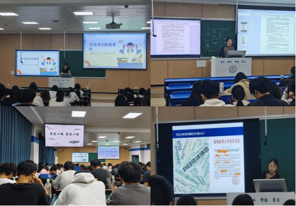 考风考纪是学风建设的“生命线”,更是人才培养质量的“试金石”。年级辅导员紧扣学院学风建设总体目标,以《学生手册》为基本依据,结合学校历年学风建设典型案例与要求,系统解读考试违纪行为的认定标准、对应的处分措施,以及违纪记录对学生学籍保留、学位授予乃至未来职业发展的长远负面影响。通过“以案释纪、以理服人”的方式,引导学生深刻认识诚信应考的重要性,推动思想认知从“被动遵守纪律”向“主动践行诚信”转变,让遵守考纪成为全体学生参与学风建设的自觉行动。