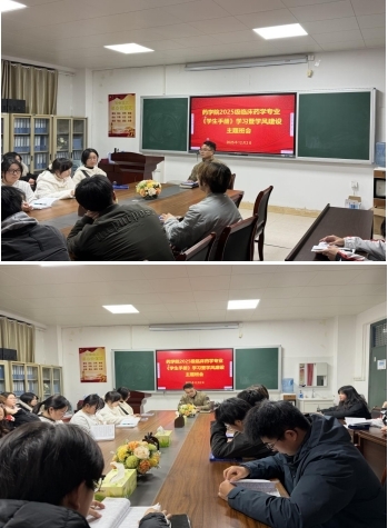 会上,夏老师以“手册为纲,行有方向”为主线,系统梳理了《学生手册》中的关键内容。他结合临床药学专业培养要求,详细解读了学籍学历管理办法和转专业实施细则,帮助同学们明确专业发展路径及相关约束条件;通过学分构成表、重修流程等直观形式,讲解了学分制实施方案与重修管理细则,使同学们清晰把握学业考核标准。此外,重点介绍了第二课堂成绩单实施细则与学生考核违规处理办法,强调学术诚信的重要性,警示大家严守底线。