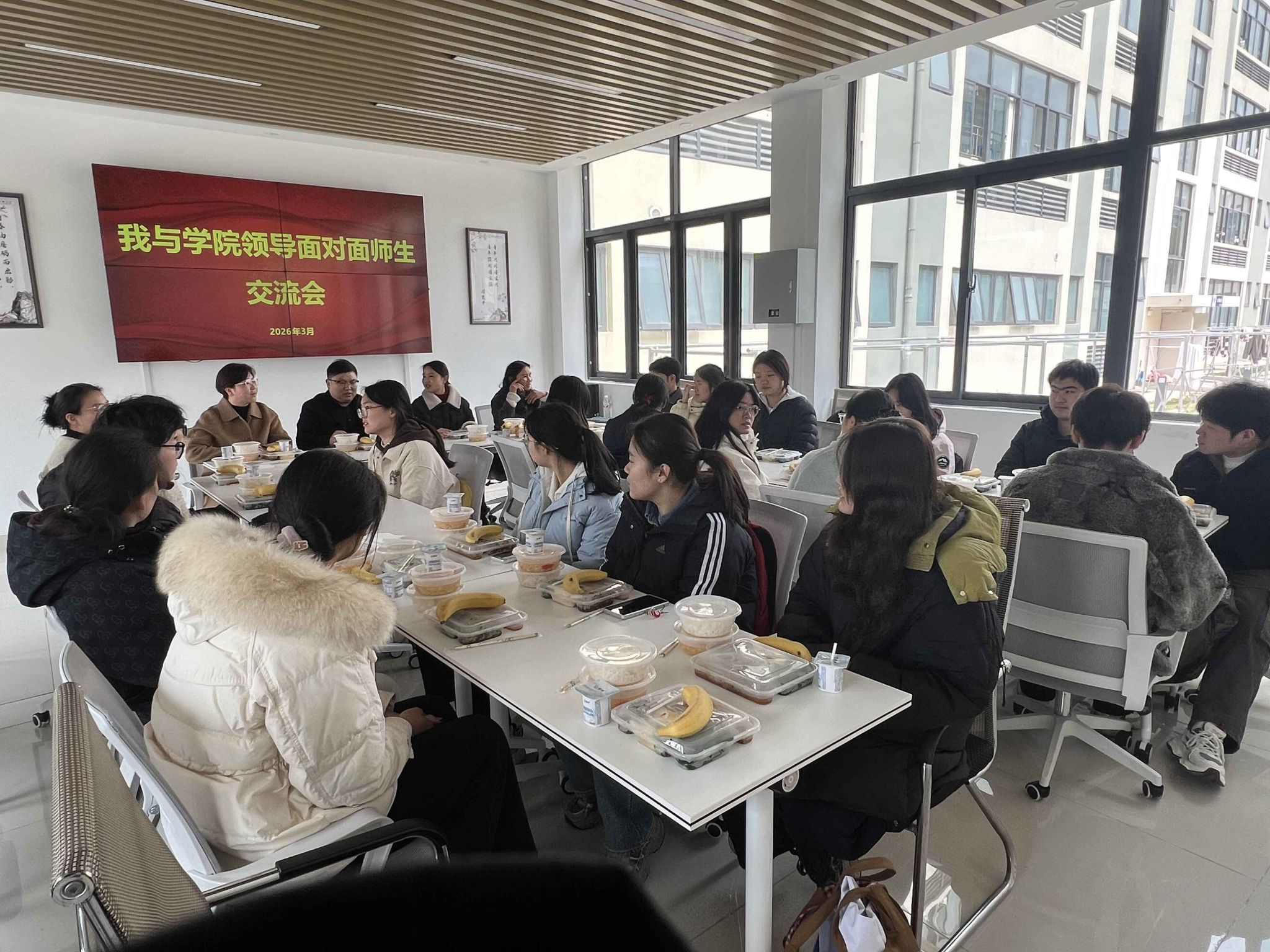 活动于温馨的午餐会中展开。学院贴心准备了营养丰富的午餐,师生围坐,畅所欲言。同学们围绕学业规划、班级建设、校园生活等话题踊跃提问,老师们则耐心倾听、详尽解答。这种轻松融洽的“边吃边聊”模式,消融了彼此间的距离感,让同学们真切感受到学院的关怀与温暖。