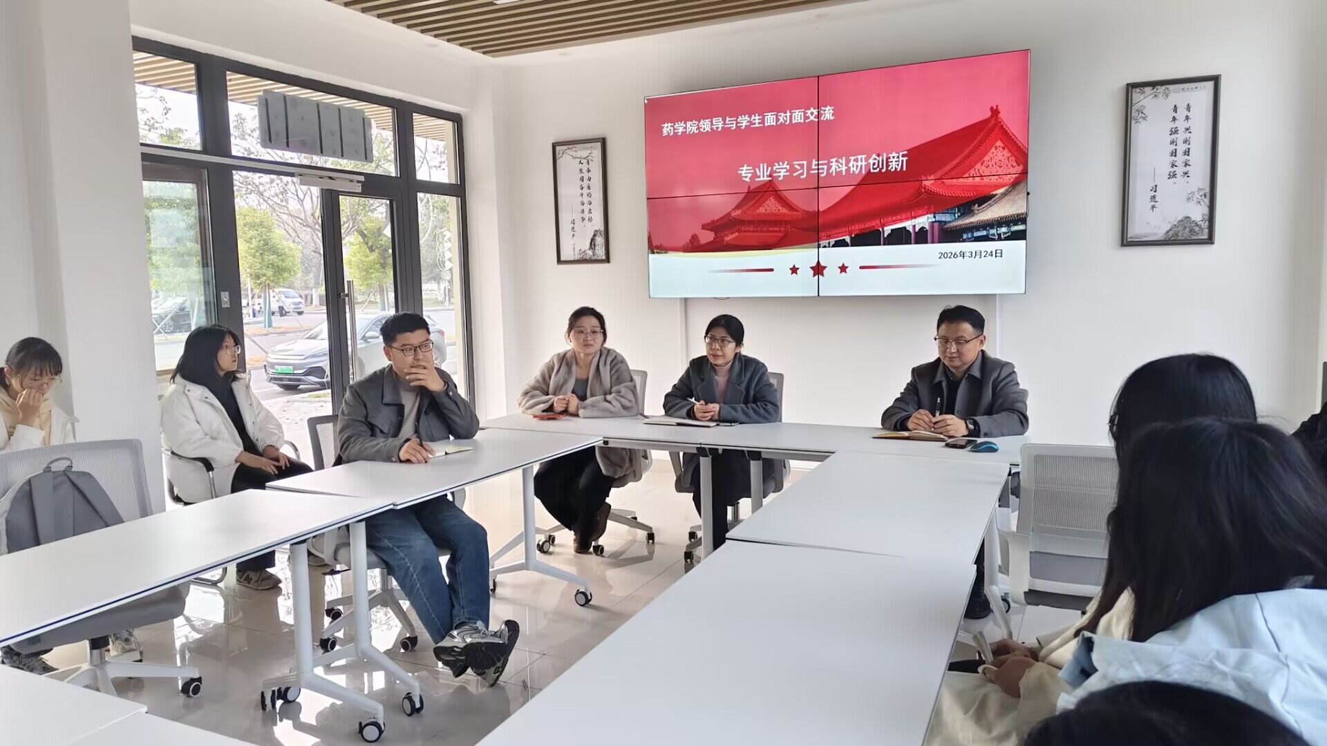 3月24日下午,药学院在学校“一站式”学生社区活动室开展第三期“我与学院领导面对面”师生交流会。本次活动以“专业学习与科研创新”为主题,副院长梁丽丽、专任教师马艳秋、孙浩参加,2025级食品质量与安全专业全体学生参加活动。